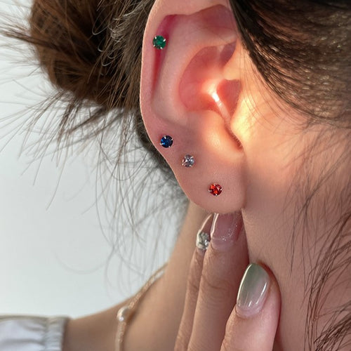 3mm簡約閃石925銀耳環