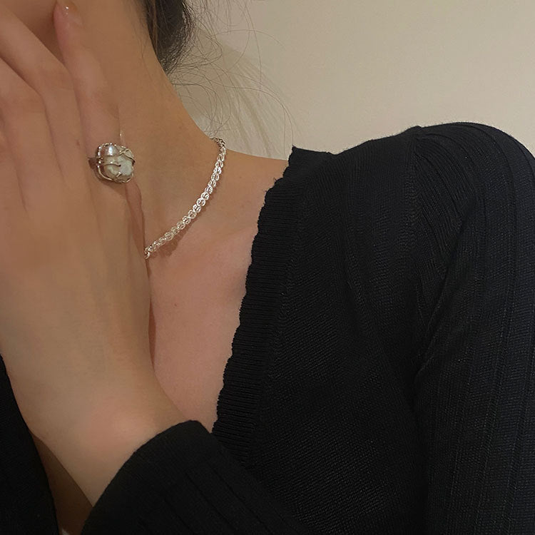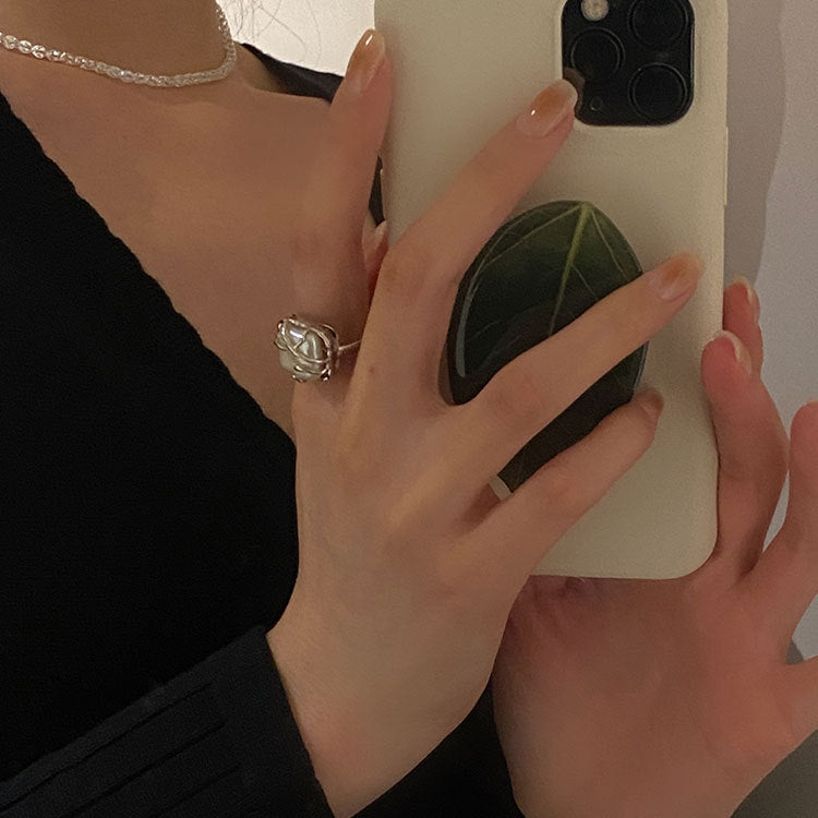 巴洛克珍珠開口925銀戒指