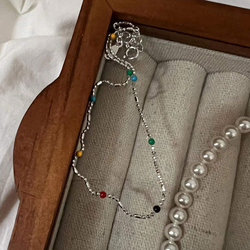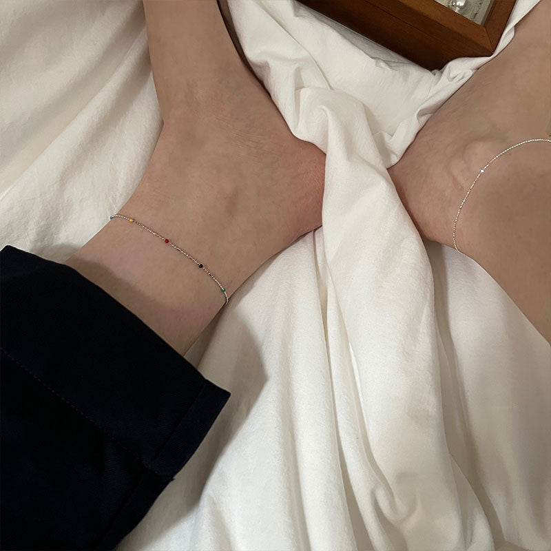 幼身圓珠彩色925銀腳鏈