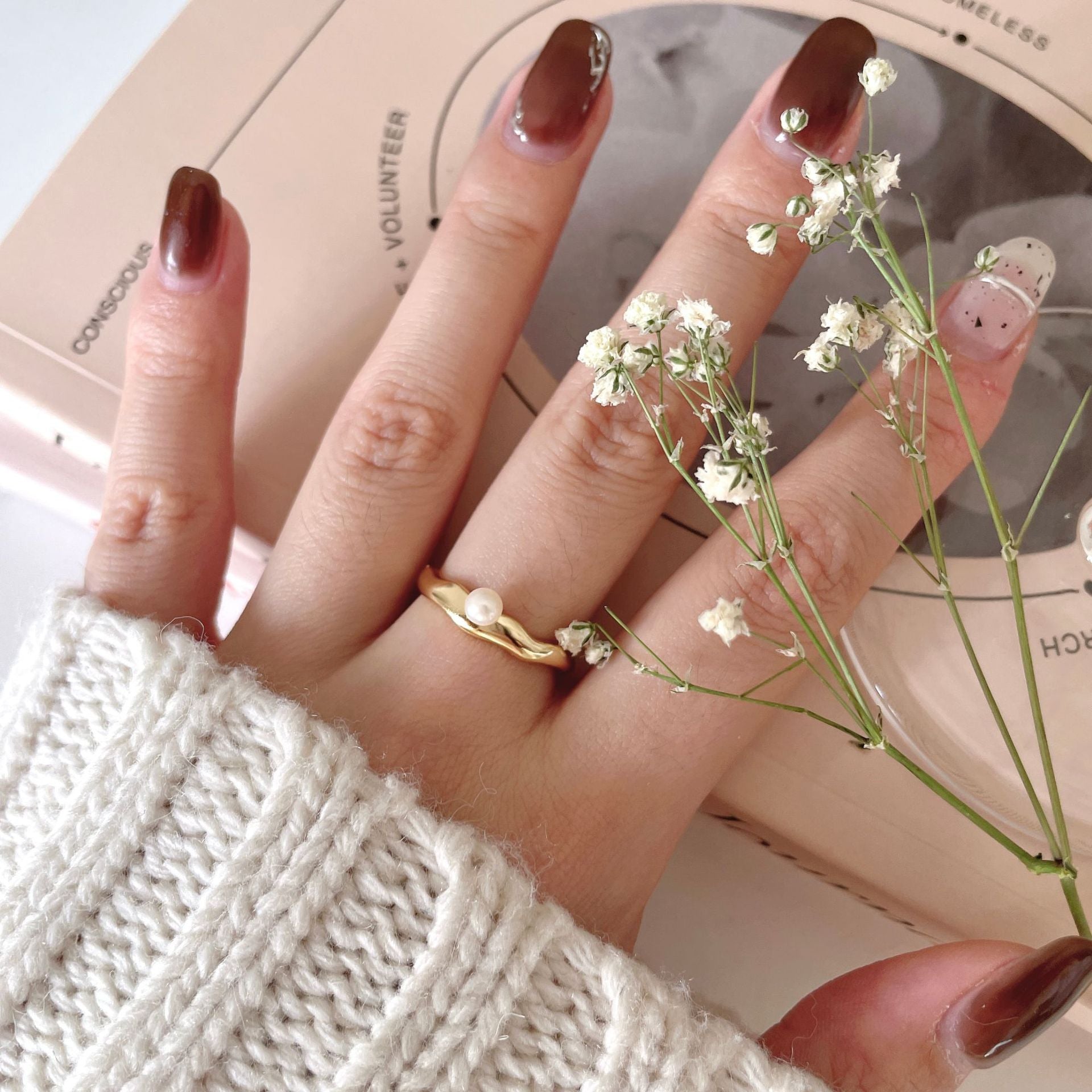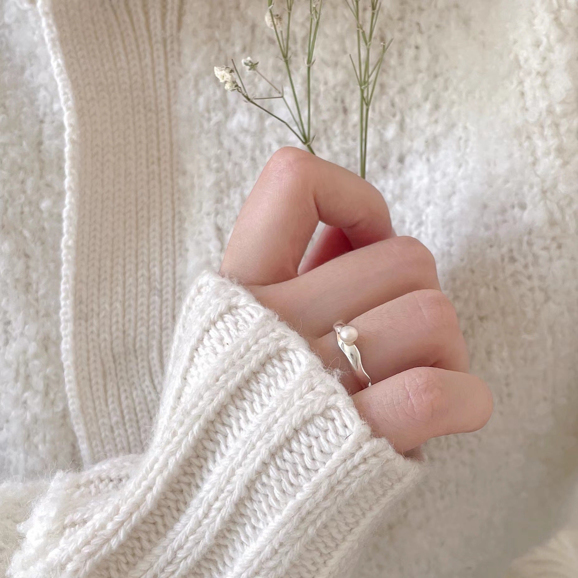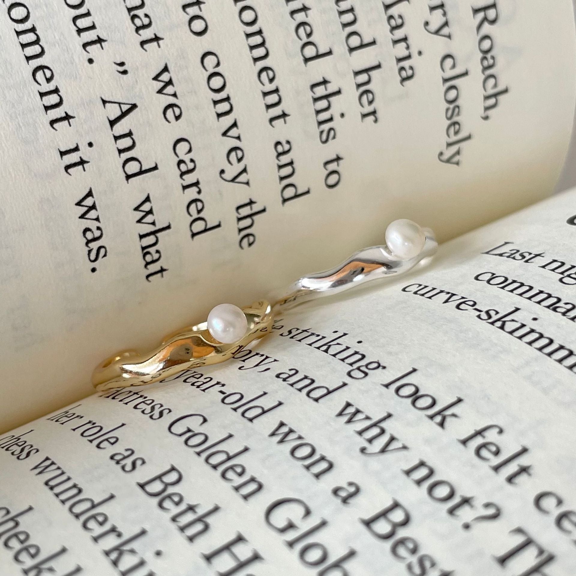 珍珠波浪925銀戒指