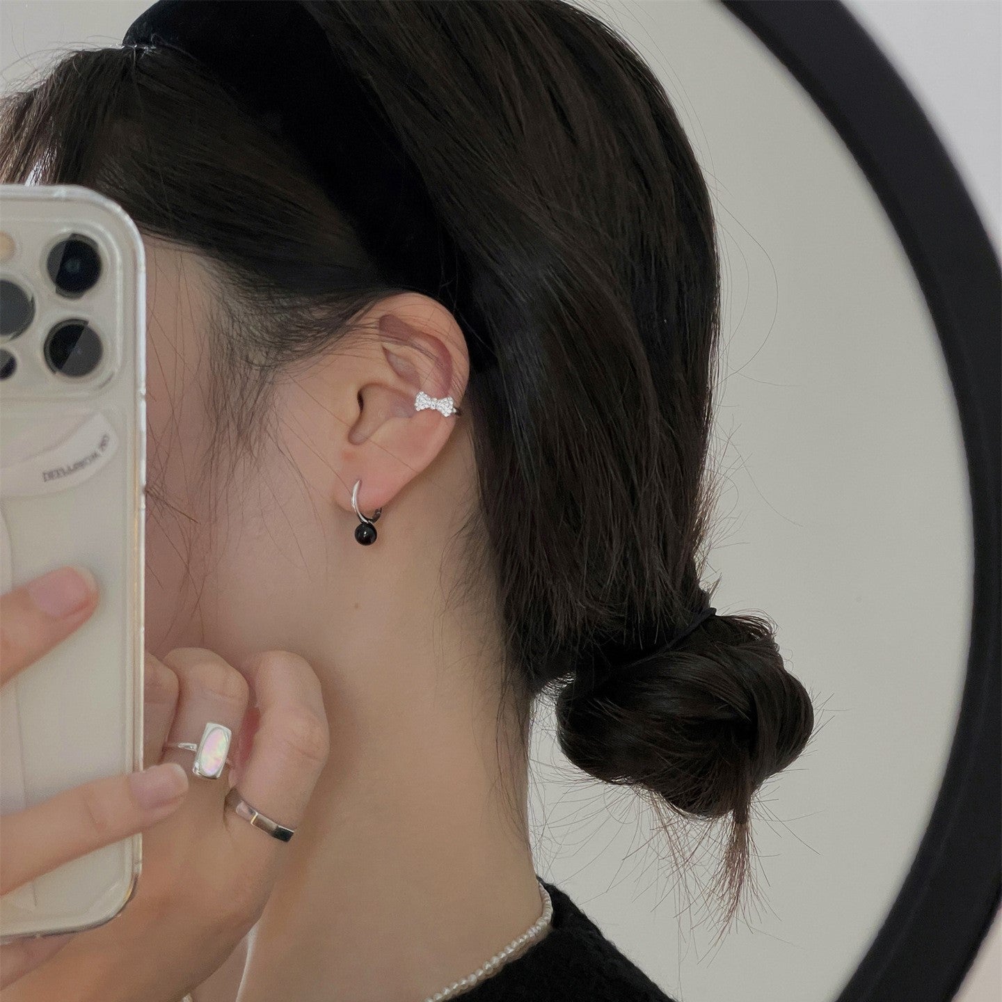 蝴蝶結925銀耳骨夾