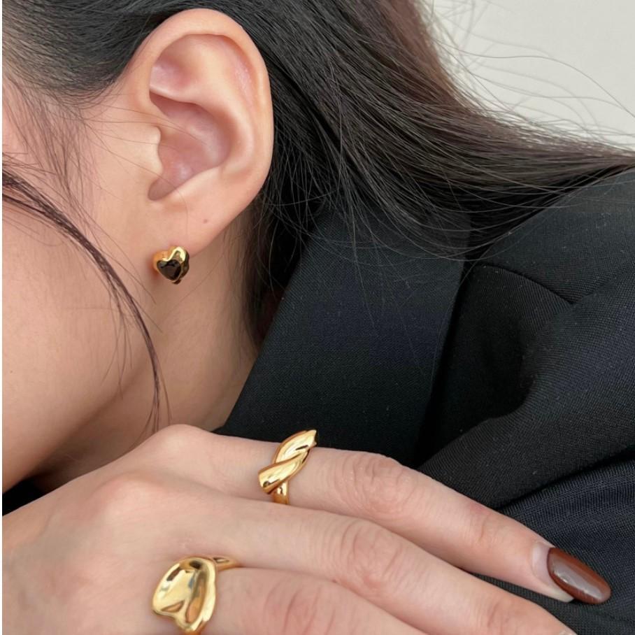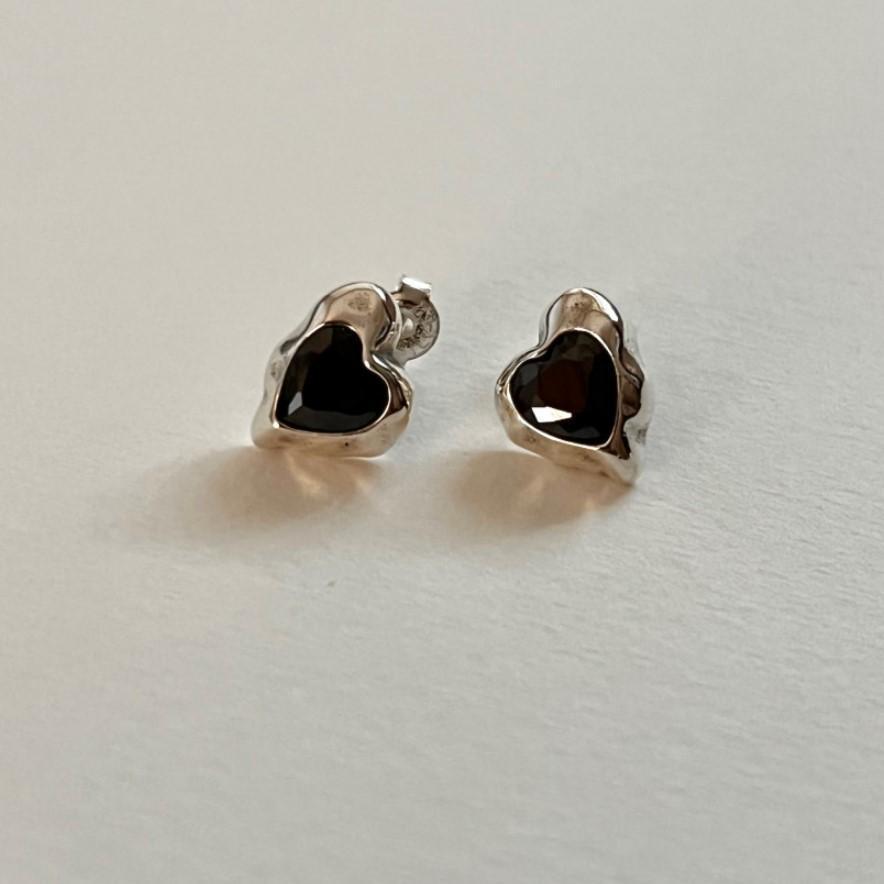 黑鑽心心925銀耳環