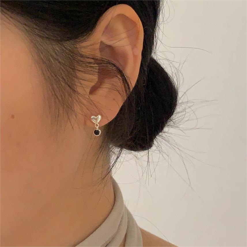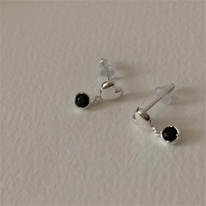 黑鑽心心925銀耳環