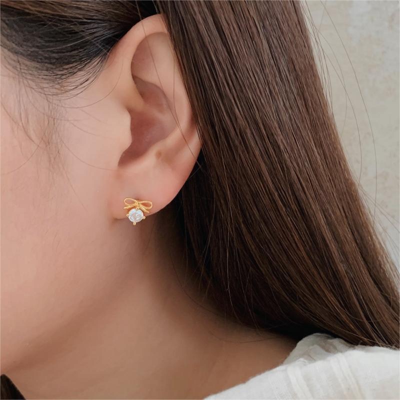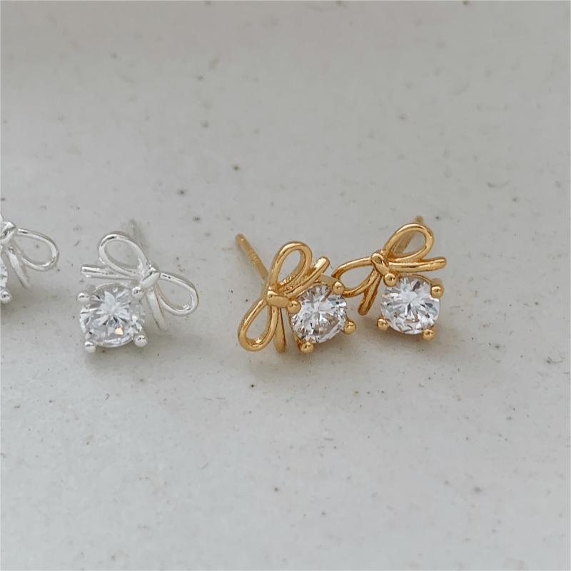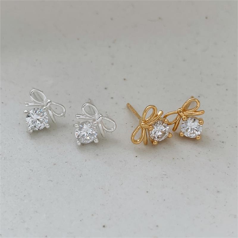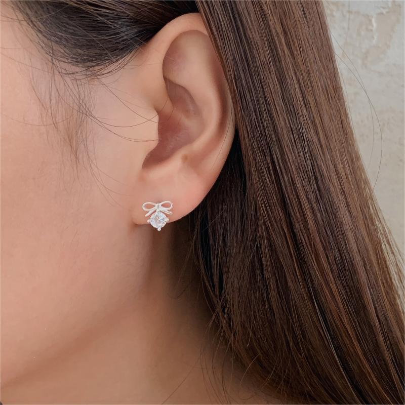 蝴蝶結925銀鋯石耳環 (C1212)