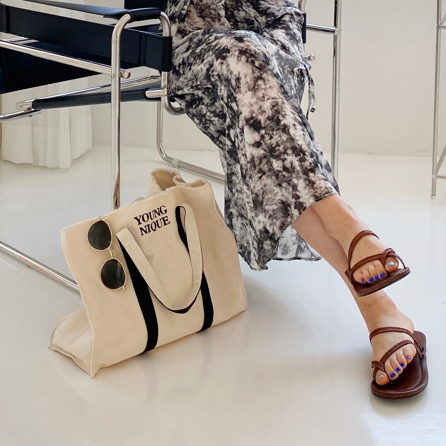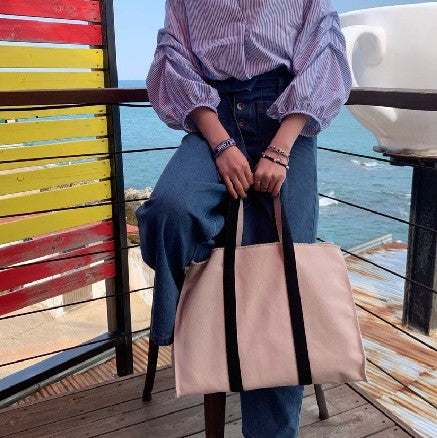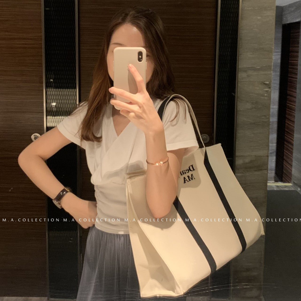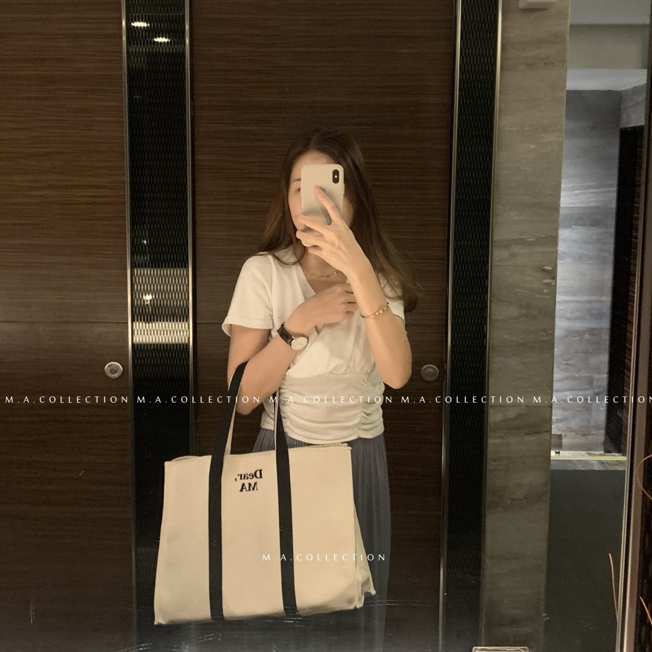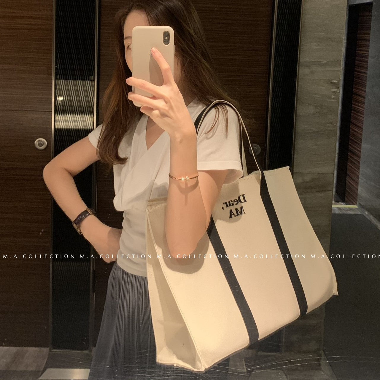 Made in Korea 定制黑帶刺繡字母大帆布袋