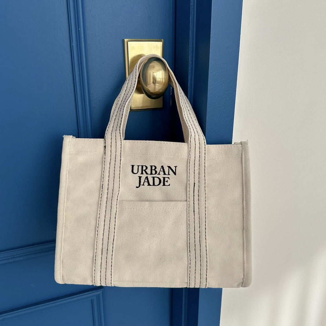 Made in Korea 定制間條刺繡字母小帆布袋💕