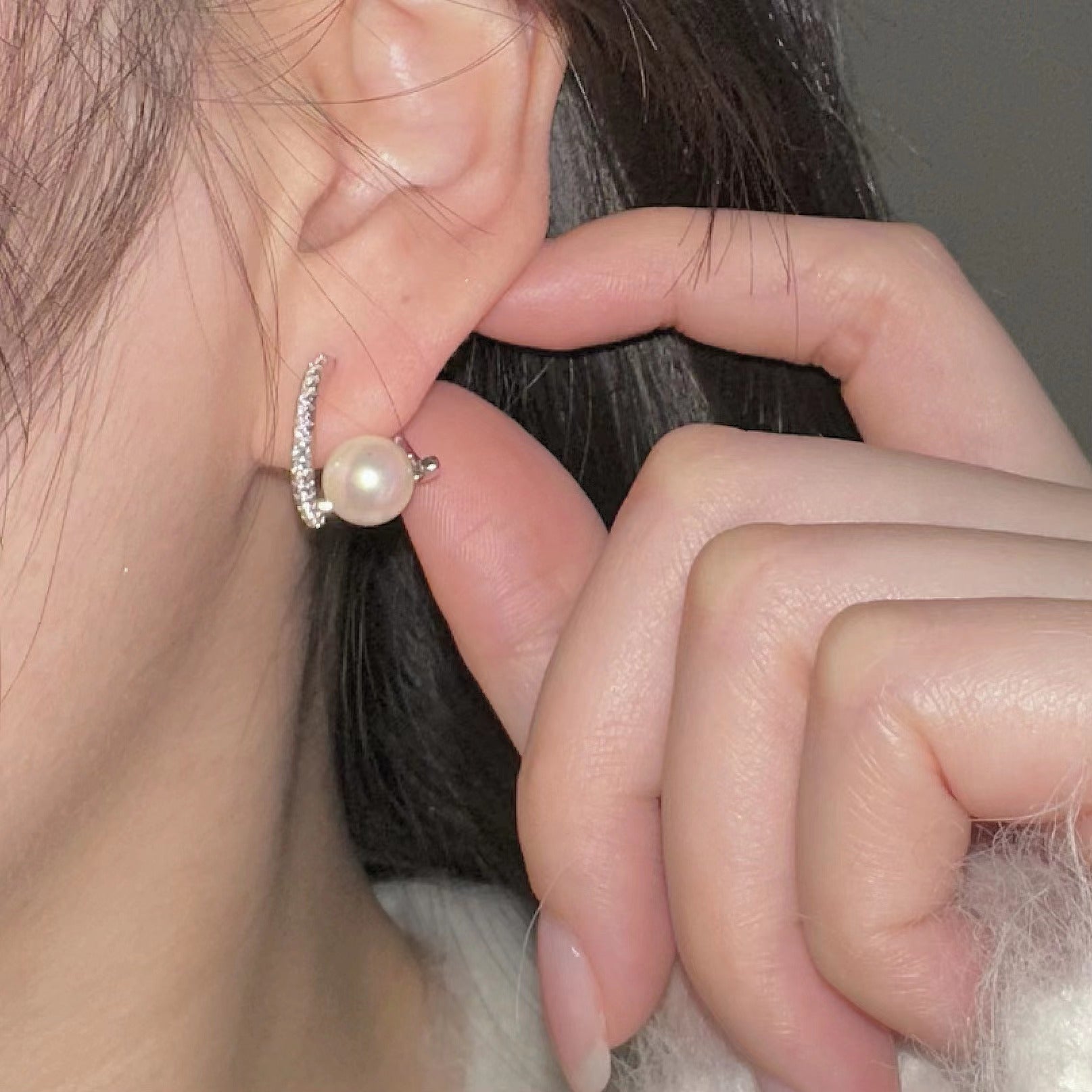 珍珠鑲鑽925銀耳環