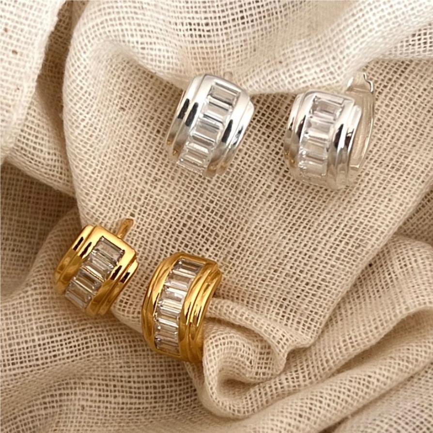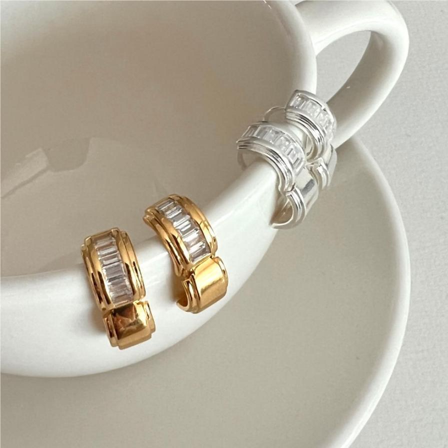 方鑽925銀耳環