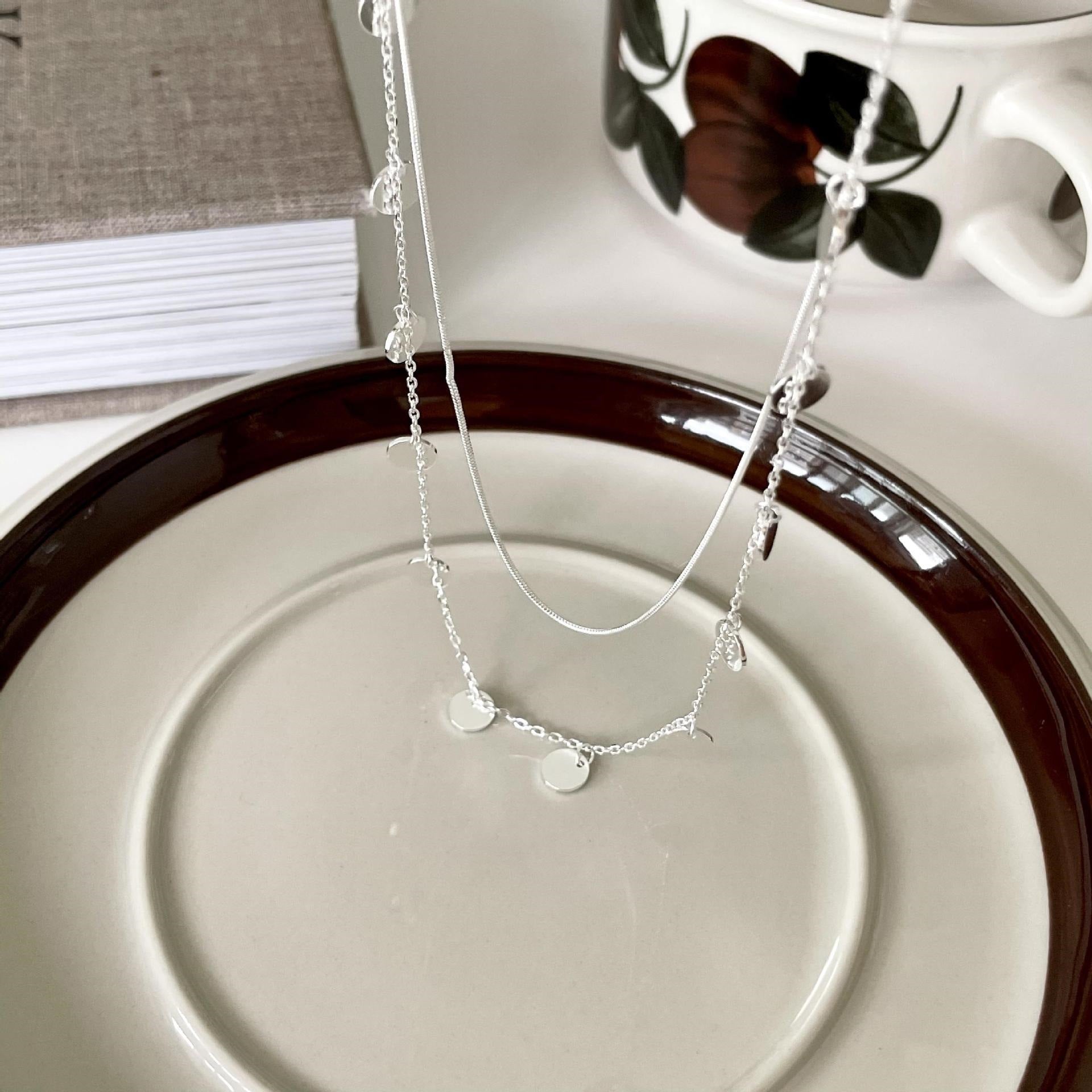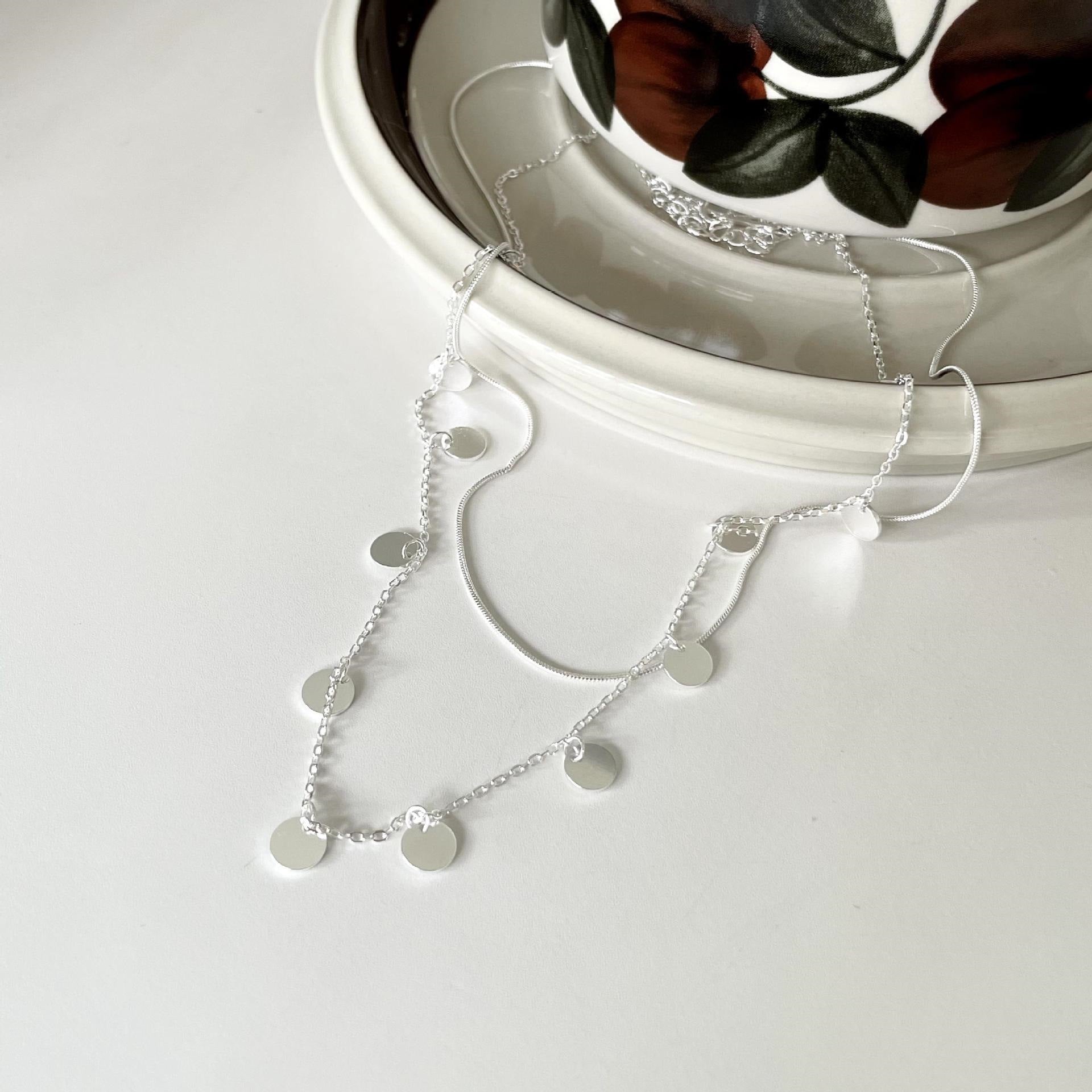 雙層圓片925銀頸鏈