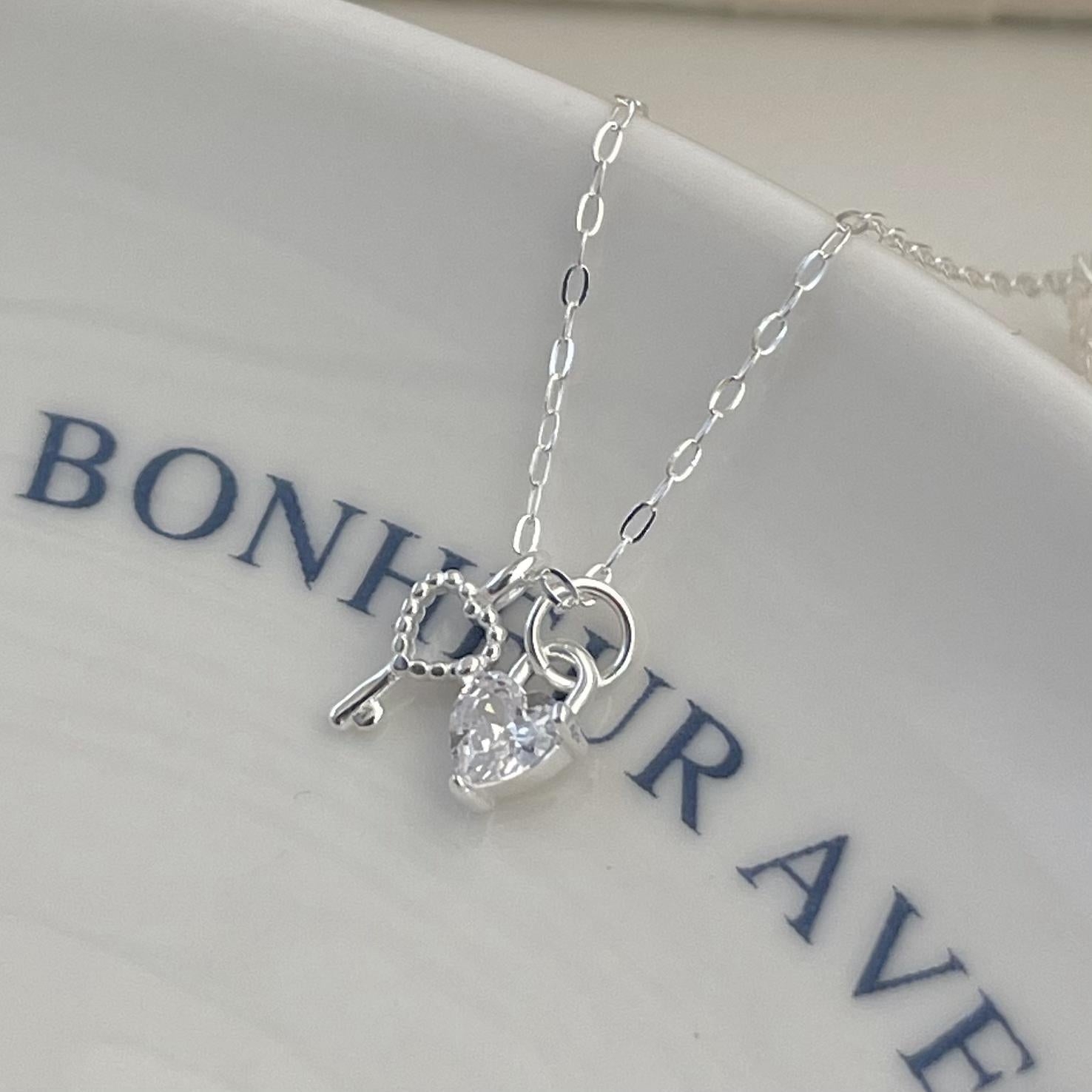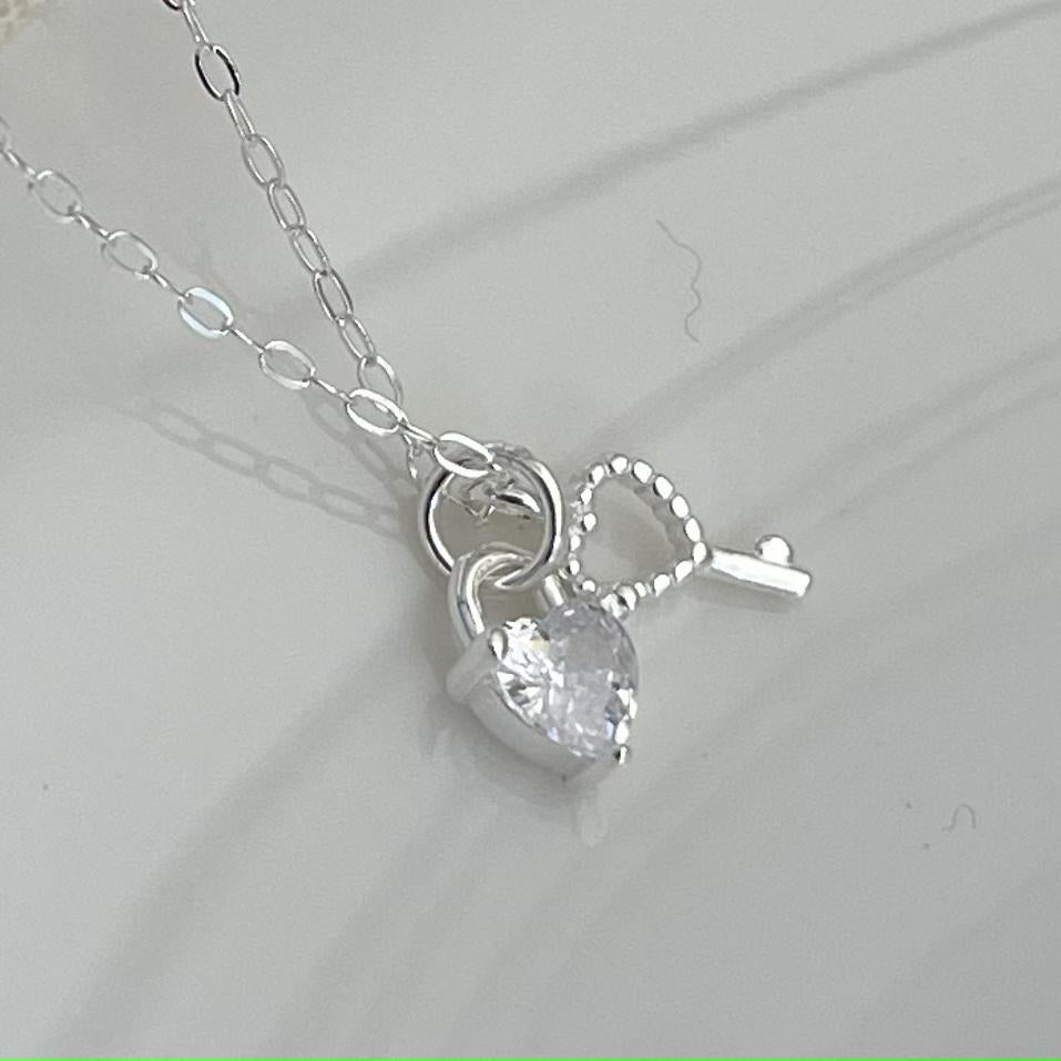 925純銀鋯石心心鑰匙項鍊