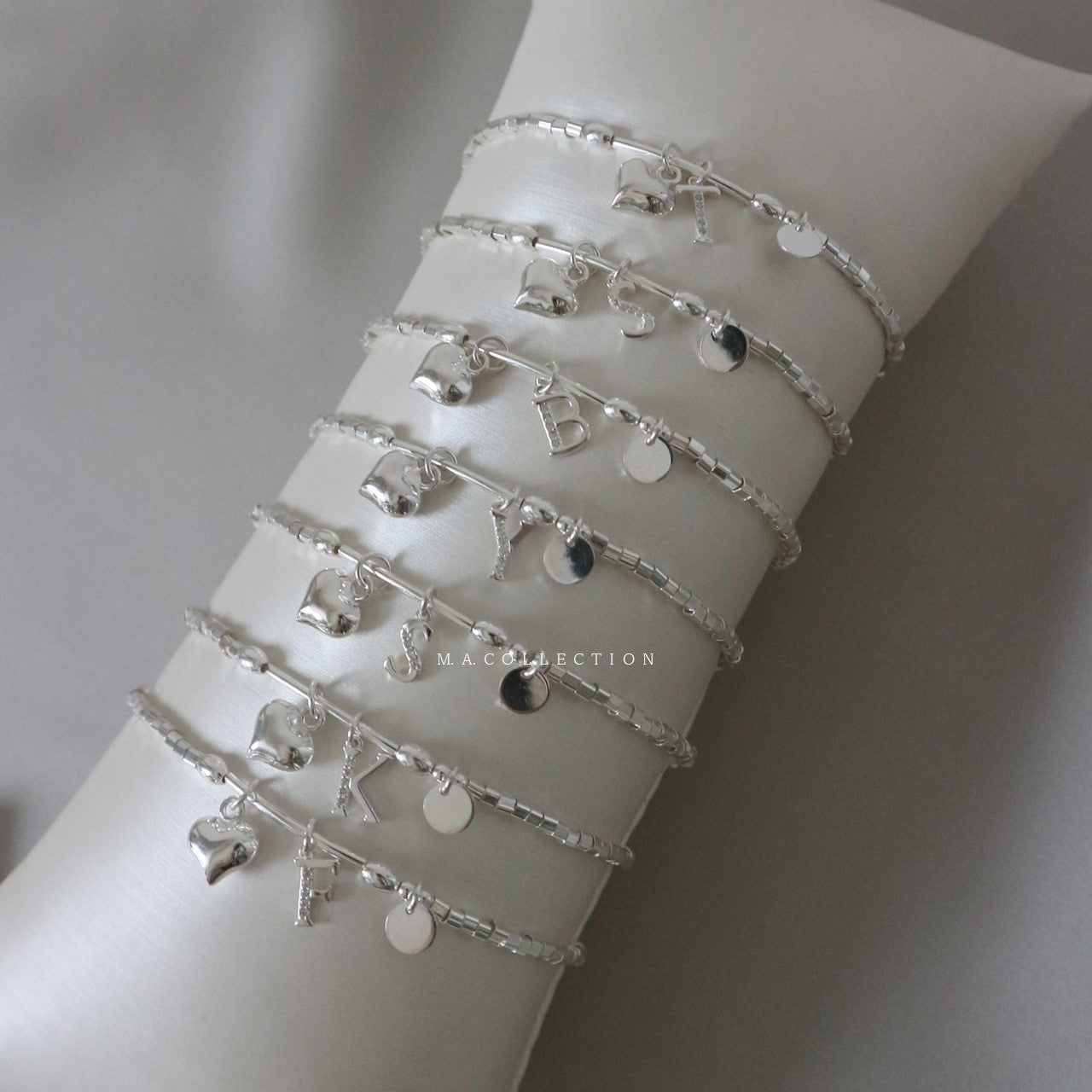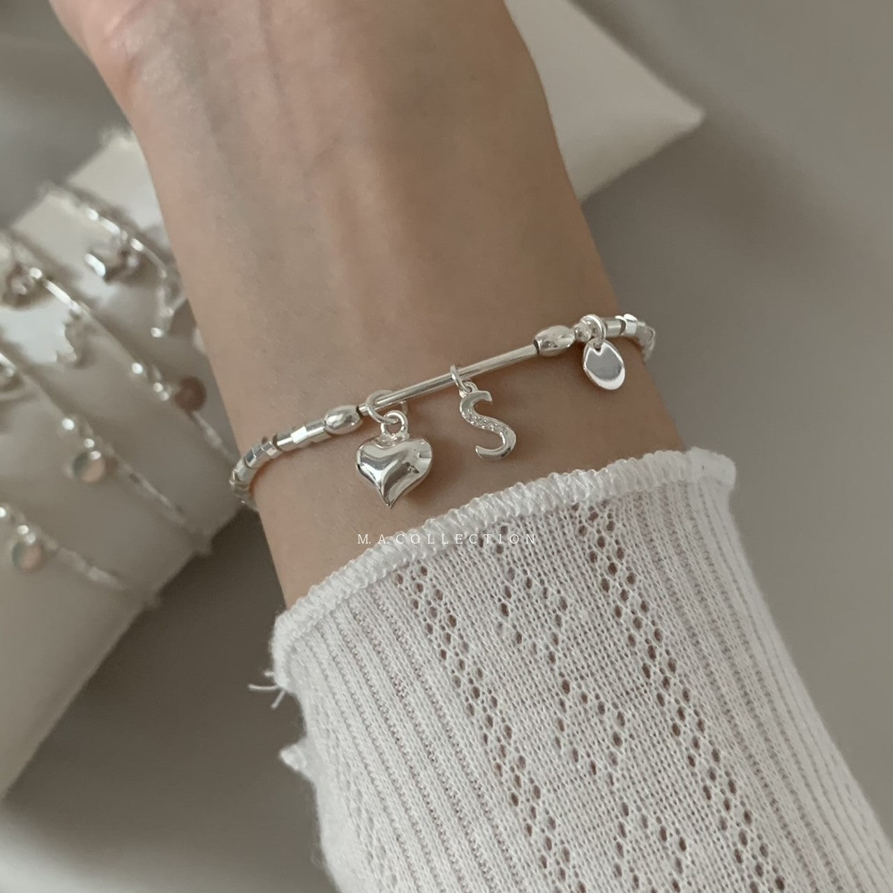 心心圓片925銀字母手鏈