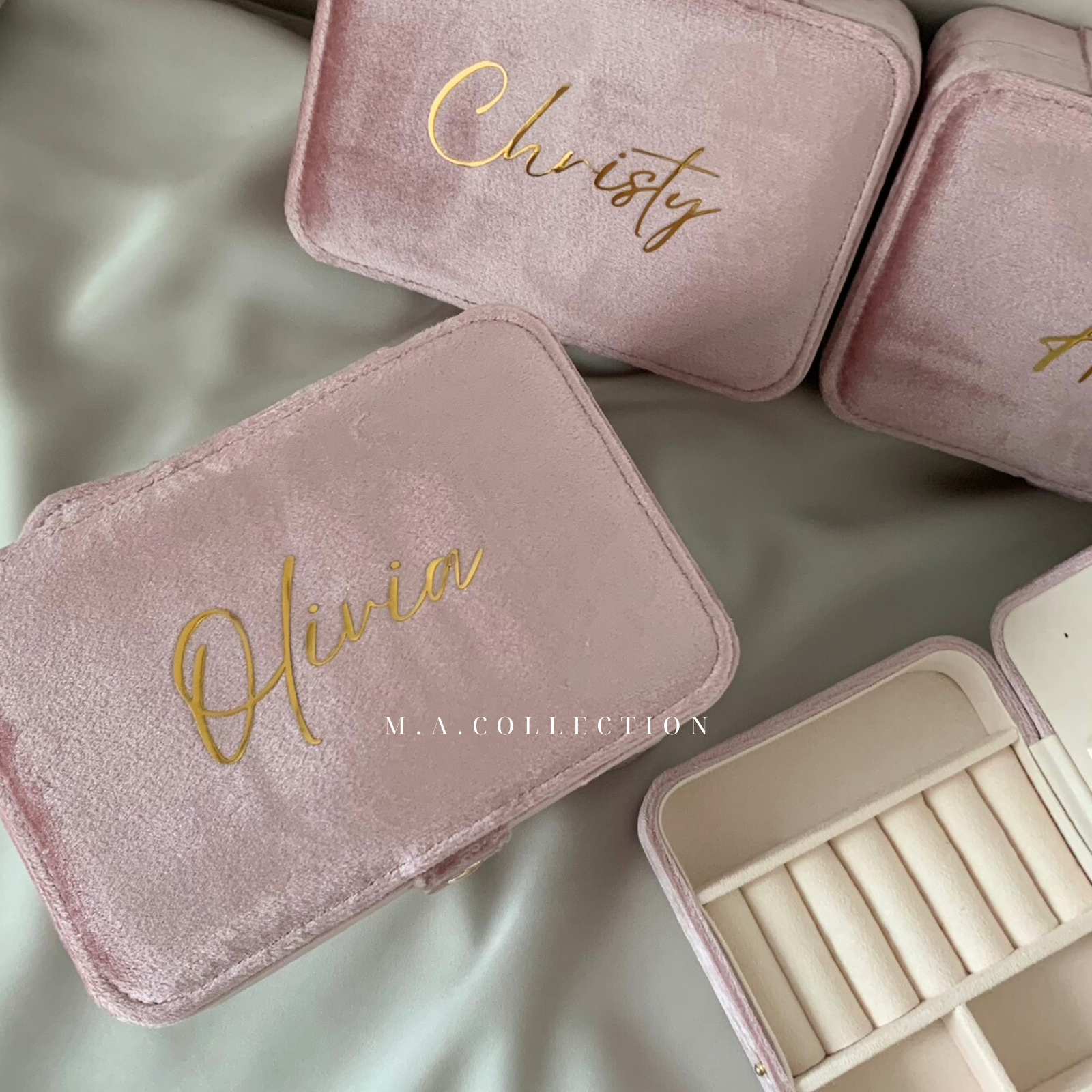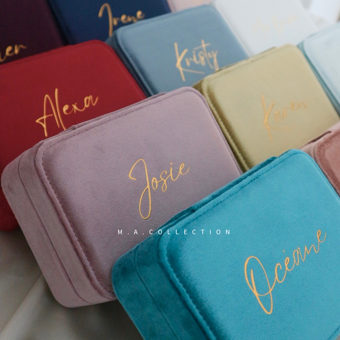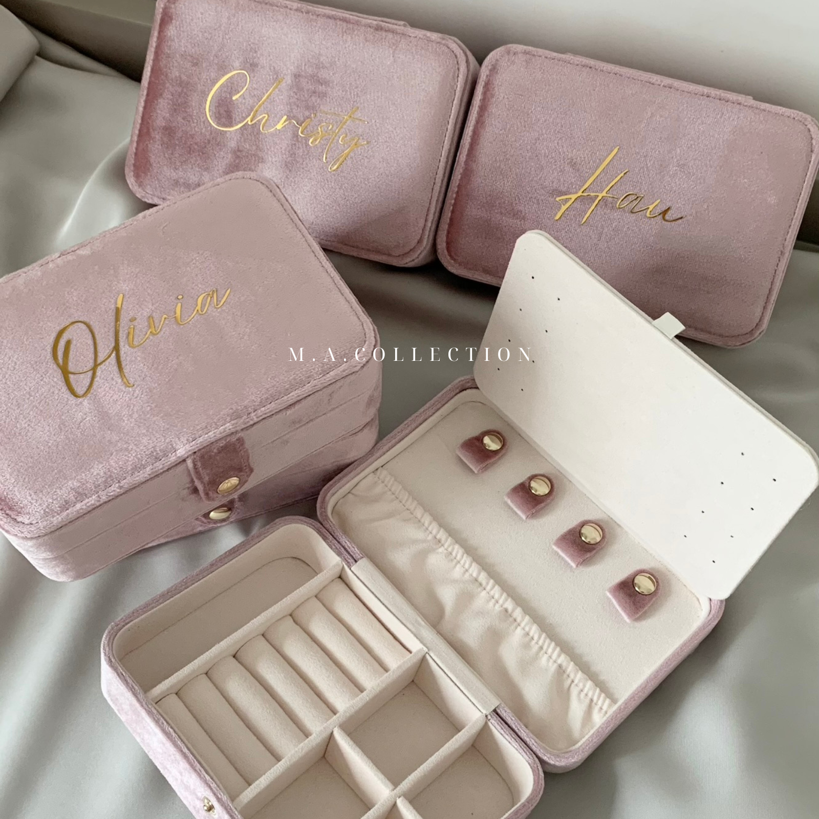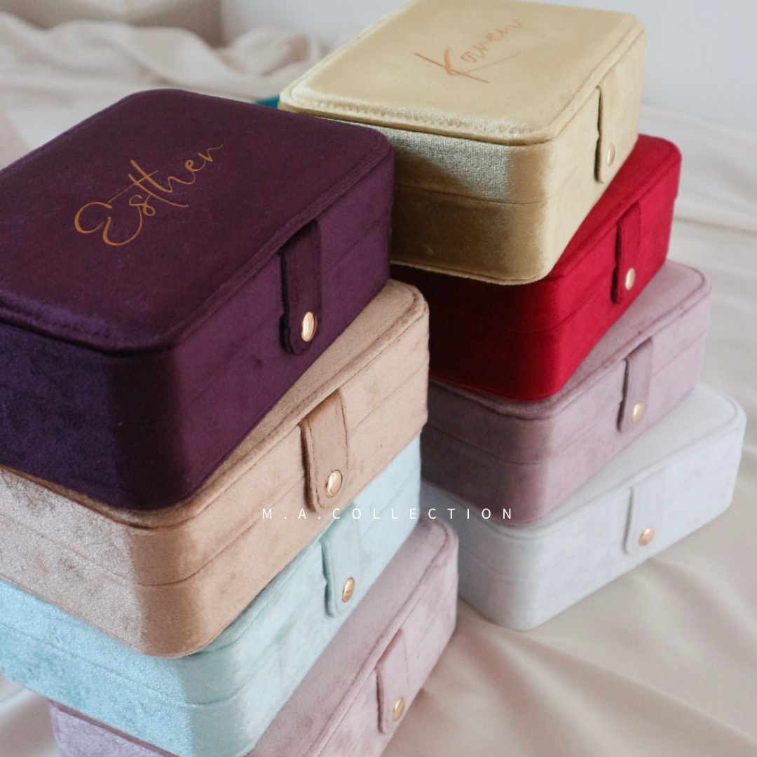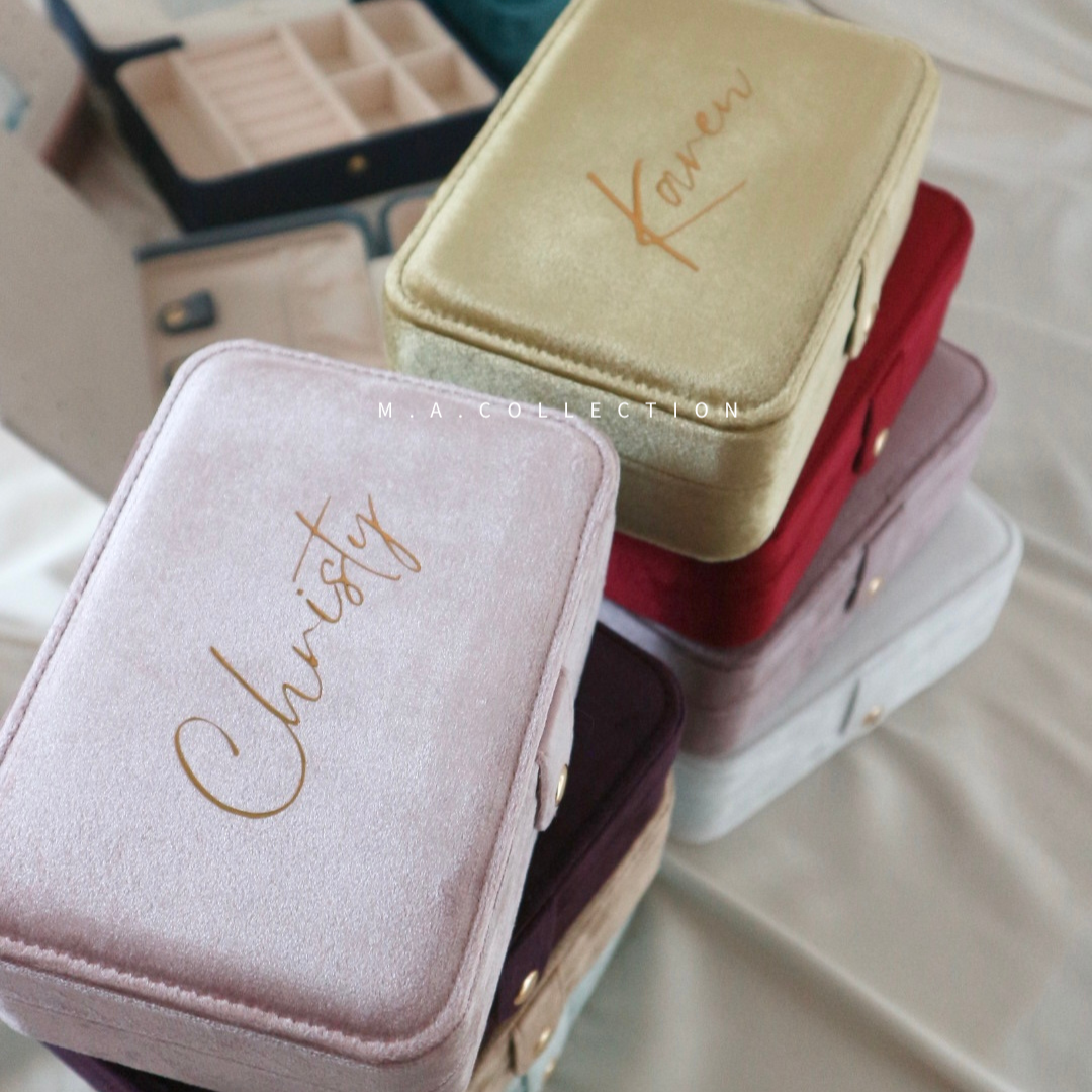 定制燙金字母絨布飾物盒 (長方形扣子款)